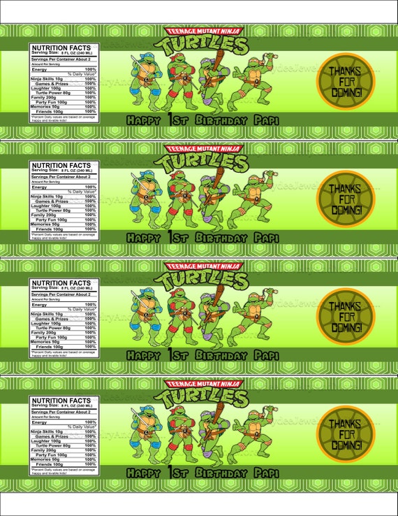 Ninja Turtle - Birthday Invitation and Printable Party Decoration ... Ninja Turtle Birthday Invitation and Printable Party Decoration Digital File - PrintDParty ... Ninja Turtle Favor Tag $ 4.00; Ninja Turtle Food Tent $ 4.00; Ninja Turtle Birthday Banner $ 4.00; Ninja Turtle Printable Birthday Package $ 16.00; Ninja Turtle Birthday Sign $ 4.00; ... $ 4.00; Ninja Turtle Birthday Water Bottle Label $ 4.00; Ninja ...